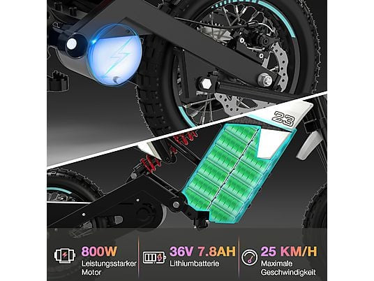 EVERCROSS TECH EV65M mit für 15+ Jugendliche Elektrisches E-Motorrad,800W Motor 3 Geschwindigkeitsmodi Kinderfahrzeug