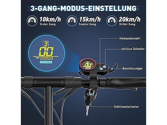 mit Straßenzulassung (ABE): Elektroroller mit Straßenzulassung (ABE), geeignet für den öffentlichen Straßenverkehr. Der Elektroroller ist mit einem bürstenlosen 480W Motor ausgestattet, die maximale Geschwindigkeit kann 20km/h erreichen, der Fahrprozess ist glatt und leise, die Batterie mit großer Kapazität 10AH stellt die Ausdauer sicher, und die maximale Ausdauer kann 30km erreichen (abhängig vom Gewicht des Benutzers, Straßenbedingungen, Batterieverlust, etc.)