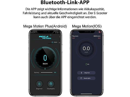 MEGA MOTION Faltbarer E-Roller mit Straßenzulassung ABE mit App E-Scooter (8,5 Zoll, Weiß und Schwarz)